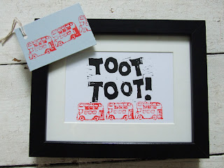 Also for We Make Christmas, I will be offering an inspiring mixture of framed limited edition posters and gift-wrapped canvases ready to take away. Something for grown-ups to give and keep: posters with lines from songs, Christmas bunting and gorgeous cards, and something for the little ones, including my new Toot Toot Beep Beep prints, made using a vintage letterpress block of a London bus. Plus cards, tags, bunting, badges- and more!